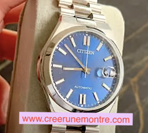 La Belle Citizen Tsuyosa , à la fois citadine et sportive doté d’un boîtier de montre  ouvert pour admirer son mouvement automatique finition gold. C’est une très belle montre avec un rapport qualité/prix excellent.